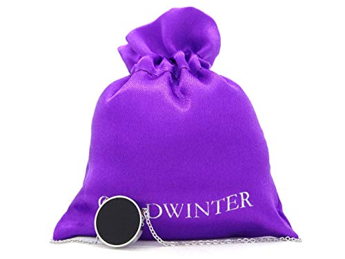 Collana girocollo in vero oro bianco con ciondolo rotondo in pietra di luna nera profonda e sacchetto regalo viola con scatola portagioie nera. e Oro bianco, colore: Nero, cod. NH7