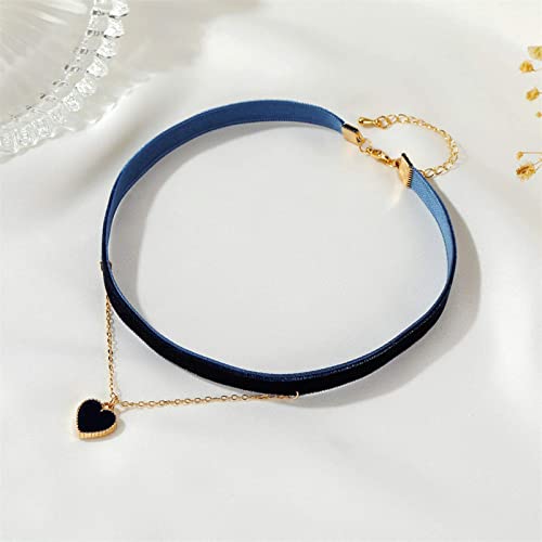 Collana girocollo nera con cuore Boho Collana con cuore in velluto a forma di cuore Collana a 2 strati con gioielli placcati in oro per donne e ragazze (Blu)