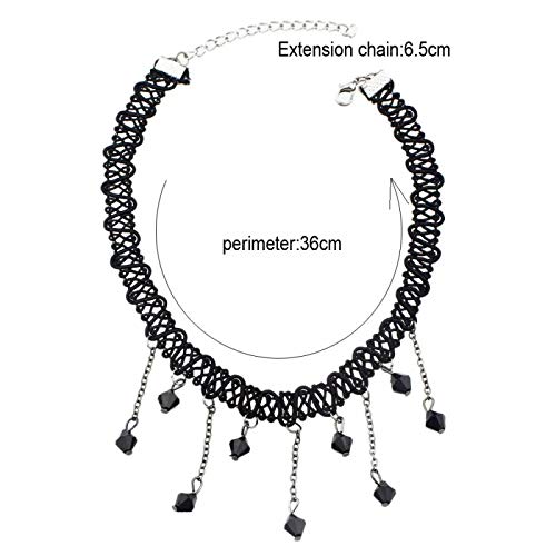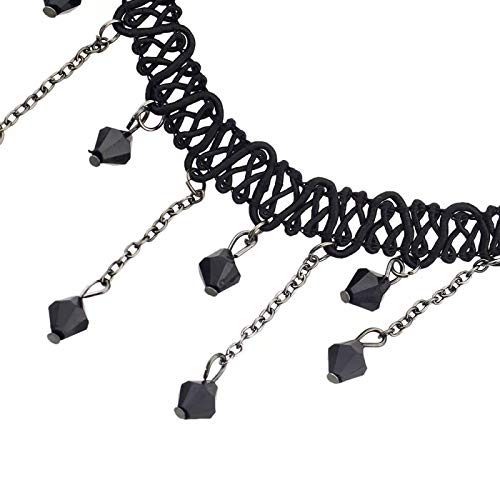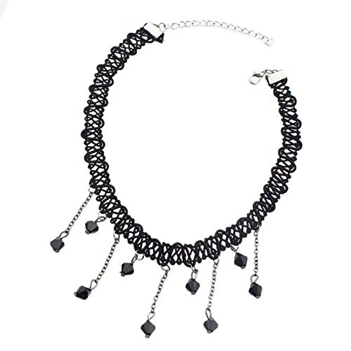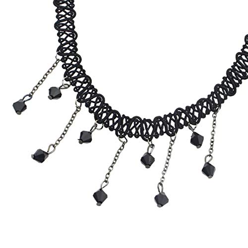 Collana girocollo donna - Collarino - Tessuto - Perle nero - Gotico - Steampunk - Retro - Vintage - Vittoriano - Colore Nero - Idea regalo - Natale - Compleanno - Bigiotteria - Gioielli