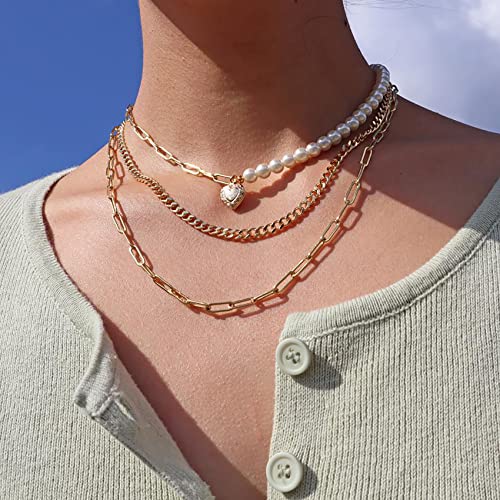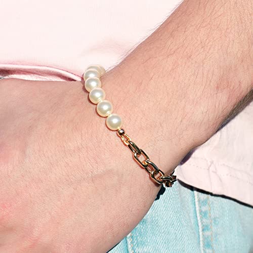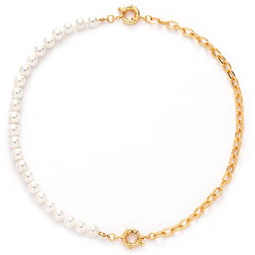 Collana girocollo di perle per donna Collana mezza perla mezza catena | Collana girocollo di perle a graffetta | Set di bracciali a catena di perle | Catena a maglia cubana con collana di perle