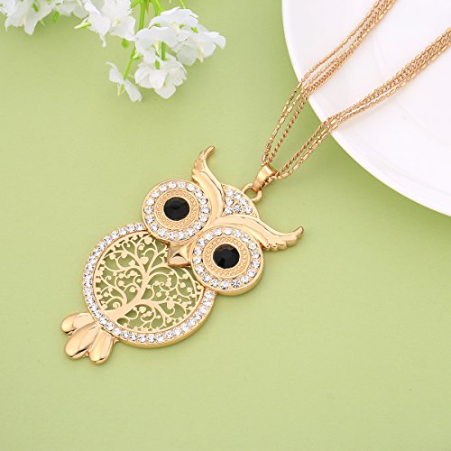 Collana lunga per le donne, Collana con ciondolo gufo per ragazze Collana con catena a più strati in oro o argento con cristallo (Placcato oro)