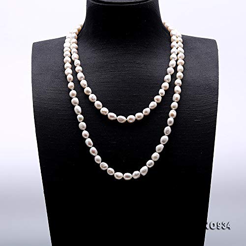 JYX - Collana lunga con perle d'acqua dolce irregolare, 8-9 mm, lunghezza 122 cm, Perla, perla