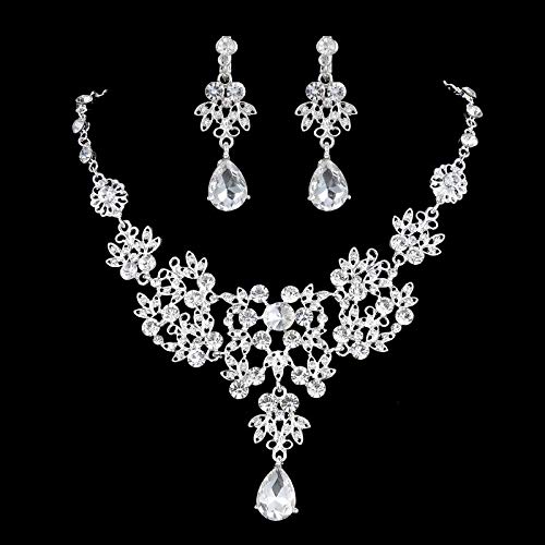 Collana Orecchini in cristallo color argento per donna Set di gioielli da sposa Set di gioielli da sposa placcati con diademi e corone