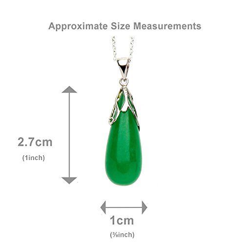 Collana orientale in argento Sterling con ciondolo di giada verde a goccia, lunghezza 45,7 cm