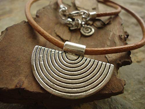 Collana in pelle con SPIRALE PENDENTE ✿ sabbia o marrone scuro (199)