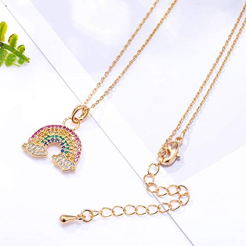 Collana con pendente arcobaleno da donna, collana a catena lunga placcata in oro rosa e argento con zirconi (Placcato oro)