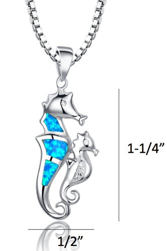 Collana con pendente da donna cavalluccio marino madre e figlio con blu e verde Opale di fuoco in Argento Sterling e zirconia cubica, catenina veneziana da 46 cm - Sc054n46