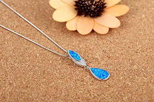 Collana con pendente da donna, Marchesa e lacrima con blu e verde Opale di fuoco in Argento Sterling e zirconia cubica, catenina veneziana da 46 cm - SC145n46