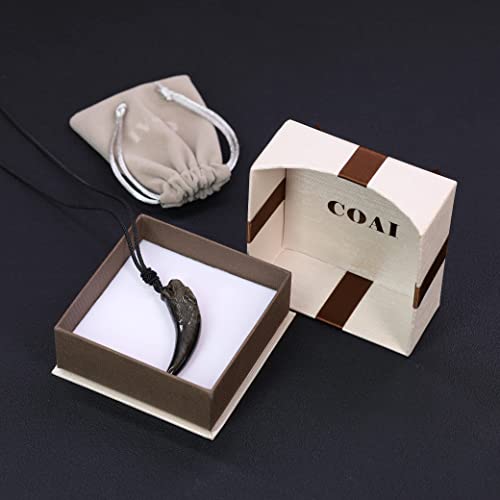 COAI Collana Pendente Laccio Regolabile con Ciondolo Dente di Lupo Intarsiato in Ossidiana Oro per Uomo e Donna