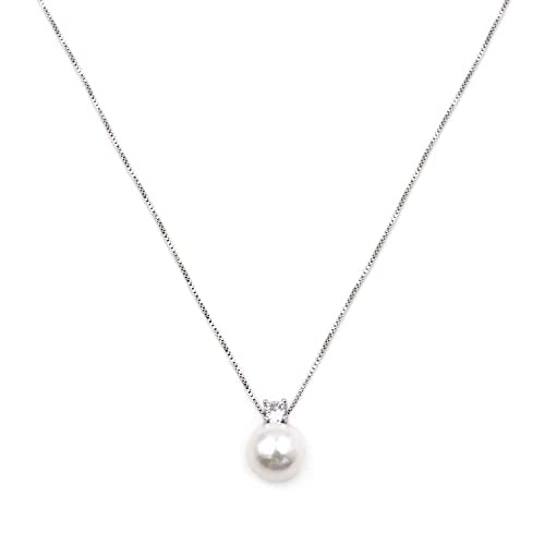 Collana con Pendente Perla da 10 mm e Punto Luce da 4 mm, realizzata in Argento Sterling 925 Rodiato Argento