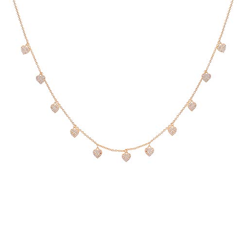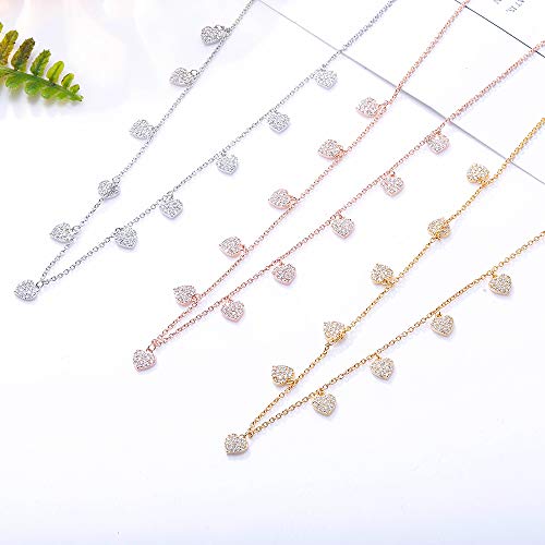 Collana con pendente a stella/luna/cuore per donna, collana a catena lunga placcata in oro rosa e argento con zirconi (#2 Cuore, Placcato oro)