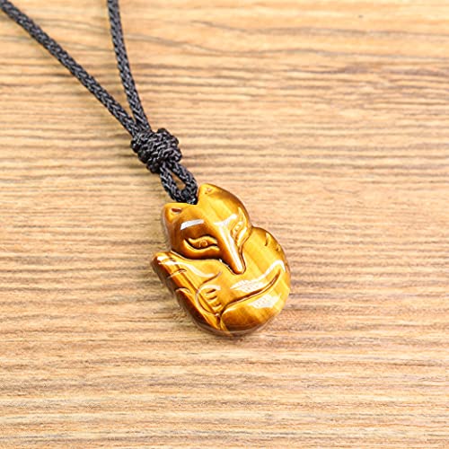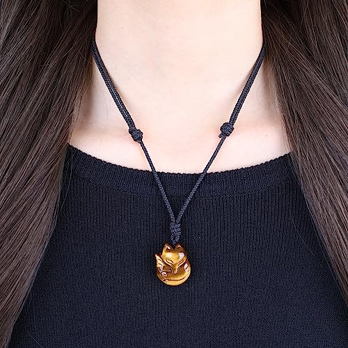 COAI Collana con Pendente Volpe in Occhio di Tigre Marrone Laccio Regolabile per Uomo e Donna