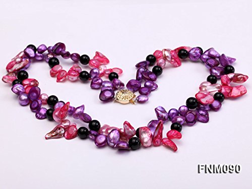 JYX - Collana con perle d'acqua dolce e agata con 2 fili, 7-15 mm, colore: viola e rosa, 43,2-49,5 cm