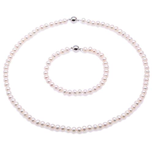 JYX - Set di collana di perle d'acqua dolce da 6,0 a 7,0 mm, con collana e orecchini a perno con chiusura magnetica, da donna e Lega, cod. FPS064