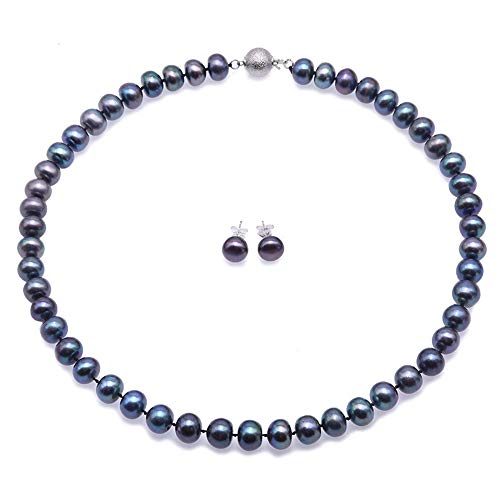 Jyx collana di perle set 9 - 10 mm collana di perle coltivate d' acqua dolce blu bracciale e orecchini gioielli set e Lega, colore: Blue, cod. FPS285