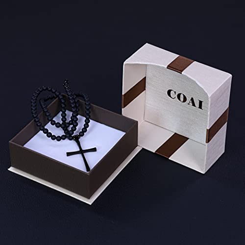 COAI Collana da Uomo con Perle di Onice Opaca e Ciondolo Croce in Acciaio Inox Nero
