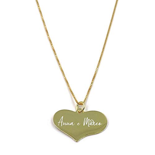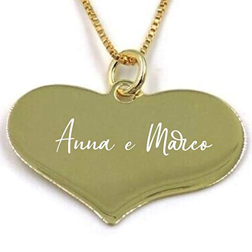 Collana Personalizzabile con Medaglia a Forma di Cuore in Argento 925 Placcato Oro, Incisione Gratuita Argento