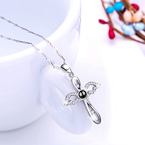 Collana Personalizzata Con Ali D'Angelo Croce Collana Con Foto Proiettata RegaloDi Compleanno Romantico Argento Sterling| Collana Ti Amo In 100 Lingue (stile 4)