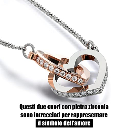 Collana personalizzata per Donna con Ciondolo a Forma di Cuori Intrecciati Contenente un Messaggio d'Amore per Tua Figlia firmato Mamma | Idea regalo per Compleanno, Natale, Festa della Mamma