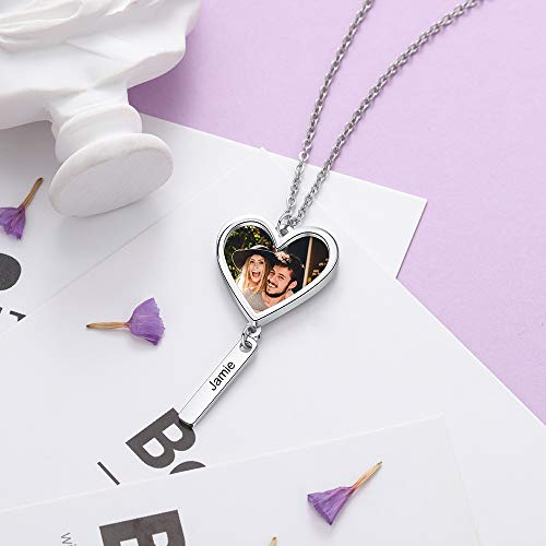 Collana con nome personalizzato con foto Collana con ciondolo a cuore in argento sterling 925 con incisione da 1 a 5 parole per la mamma Regalo per la festa della mamma, Natale (1 Name)