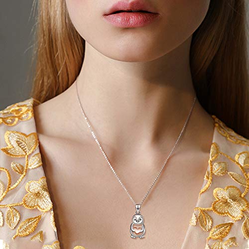 YFN Collana con pinguino per donna Argento sterling Simpatico pinguino con ciondolo a forma di cuore Regali per ragazze