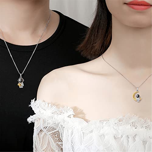Collana con foto proiettiva personalizzata Moon Star Astronaut Collane Coppie Collana in 100 lingue(Coppia 14 IN)
