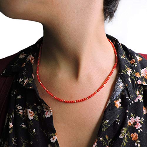 Materiale: Sfere in pasta di corallo rosso dal diametro di 3 mm, Argento Sterling 925 Placcato Oro (gioiello completamente anallergico)