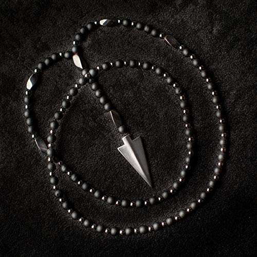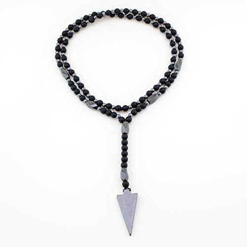 Collana da Uomo con Collana Unisex a Rosario in Pietra Ematite Collana Lunga con Freccia Ematite Pietra 6 mm Onice Nero Opaco 4 mm
