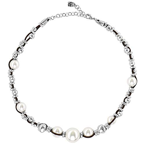 perle sintetiche bianche. larghezza massima (mm.): larghezza 15. minima (mm.): 6. L'estensione di catena (cm.): 6. argentato. chiudere Tipo: moschettone. Peso (g): 50 Lunghezza (cm): 38 Larghezza (mm): 15.