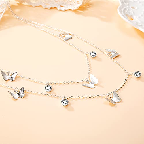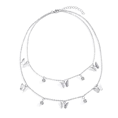 Collana vintage a doppia fila con ciondolo a farfalla argento per donna donna ragazza donna, boho multi-fila 2 file collana a farfalla retrò collana girocollo gioielli moda fidanzata madre regali