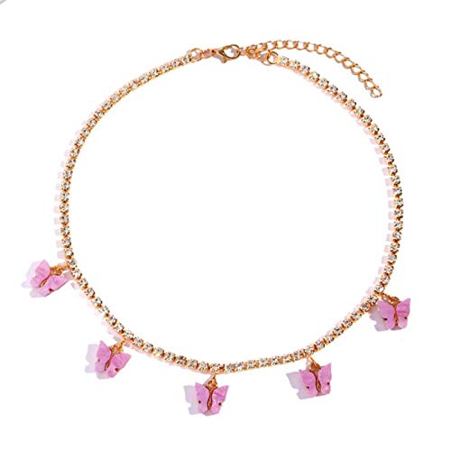 WDam Collane Girocollo con Farfalla ghiacciata alla Moda per Donna Uomo Color Argento Oro Catena da Tennis con Ciondolo Animali con Strass, 032701PP