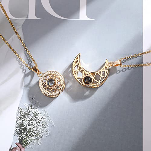 Collane Personalizzate con Coppia Sole e Luna, Collana in Argento Sterling con proiezione Ti Amo in 100 Lingue per i Migliori Amici dell'amante