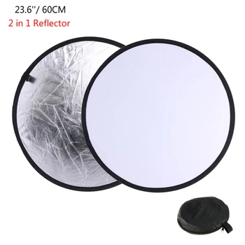 23.6" 60cm 2 in1 Collapsible Portable Light Reflector Round Photo Studio Diffuser DISC Silver White Studio Photography Reflector