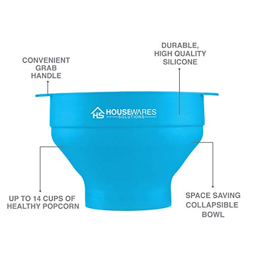 Collapsible Silicone Microwave Hot Air Popcorn Popper Bowl With Lid and Handles (Aqua)