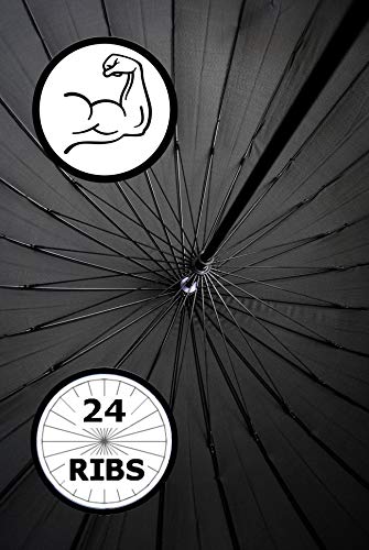 COLLAR AND CUFFS LONDON - La Forza Di 24 Bacchette - Antivento EXTRA ROBUSTO - Struttura Rinforzata con Fibra di Vetro - Manico In Legno - Automatico - Ombrello Classico - Calotta 120 cm Arco - Nero