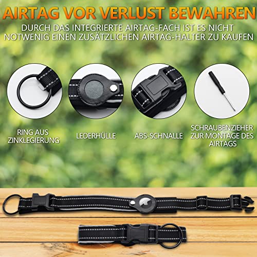 Collare per cani AirTag, collare AirTag cane regolabile tracker collare per cani con supporto AirTag supporto per cani di piccola e grande taglia (S - nero seconda generazione)