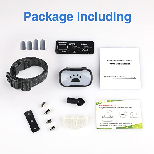 【Nessun Falso Trigger】Con una rigorosa funzione di rilevamento degli abbai falsi, questo dispositivo di controllo degli abbai per cani è dotato di sensori intelligenti e chip che rileveranno gli abbai del cane a una specifica frequenza e decibel, il collare anti abbai verrà innescato dalle vibrazioni della gola del cane, non più falsamente innescato da altri suoni o altri cani, attivandosi più velocemente e con maggiore precisione senza alcun ritardo.
