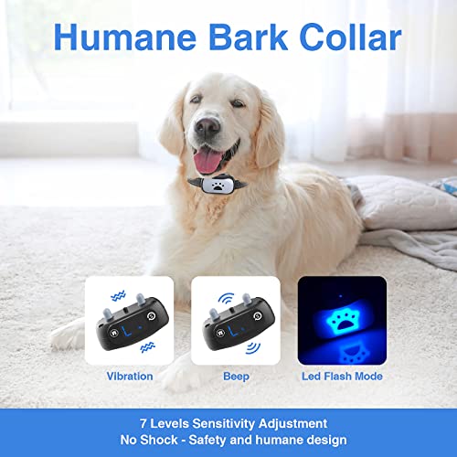 Collare Antiabbaio per Cani di Piccola, Media e Grande Taglia, Collare Anti Abbaio Ricaricabile con Bip e Vibrazione, Collare Antiabbaio Efficace 7 Livelli di Sensibilità Regolabile, Luce Blu