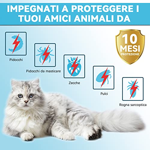 Collare Antipulci Gatto, Collare Antiparassitario Per Gatti Sicuro ed Efficace Realizzato Con Oli Essenziali Naturali, 10 Mesi Collare Anti Pulci e Zecche Gatti Di Piccola Taglia, Medio e Grande