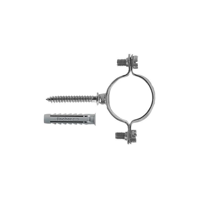 COLLARE PER TUBO FISCHER MM 13/14 CF.10PZ DOPPIA VITE TASSELLO SX6 Tassello: SX6 Ø Collarino: 13/14 mm. Filettatura: M6 Collare distanziatore per tubi elettrici e tubi multistrato, in acciaio zincato con vite e tassello - Collarino con filettatura di attacco M 6 - Conf. in busta (completo di tassello SX6 e vite doppio filetto)