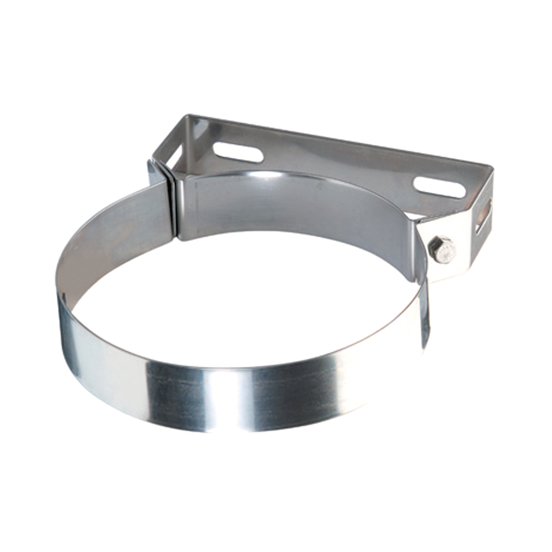 Collare in acciaio inox Dn 80 mm. Il collare garantisce che il prodotto rimanga avvicinato alla parete, evitando eventuali spostamenti longitudinali del sistema fumario.. Il collare viene fissato a muro solamente con l'uso di comuni tasselli.