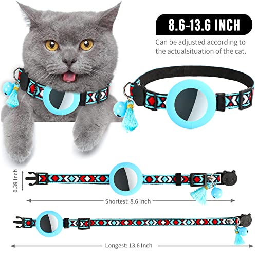 Collare per Gatti Airtag con Campanello, Collare Regolabile per Gattini con Fibbia di Sicurezza a Strappo, Custodia Impermeabile per Airtag Compatibile con Apple Airtag (Blu)