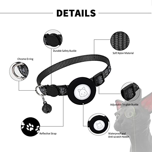 Collare per Gatti e Cuccioli Riflettente, Supporto Airtag GPS, con Campanella e Fibbia di Sicurezza, Nylon, Nero