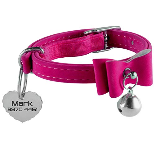 BKDZ Collare per Cani e Gatti, con Doppia targhetta identificativa in Acciaio Inox (Gatto, Rosa)