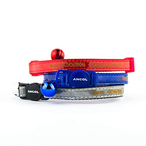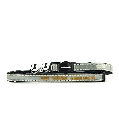 Cat collare Glossare riflettente, staccabile personalizzato inciso - Argento