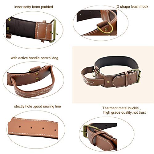Collare per cani di grossa taglia Collare per cani resistente in pelle PU con manico Collare per guinzaglio per cani marrone nero in PU