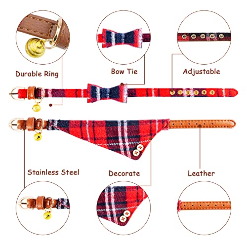 Set collare e guinzaglio per cani con papillon, 3 pezzi bandana regolabile per cuccioli e collari con campana, collare per cani bandana scozzese classica per cani e gatti