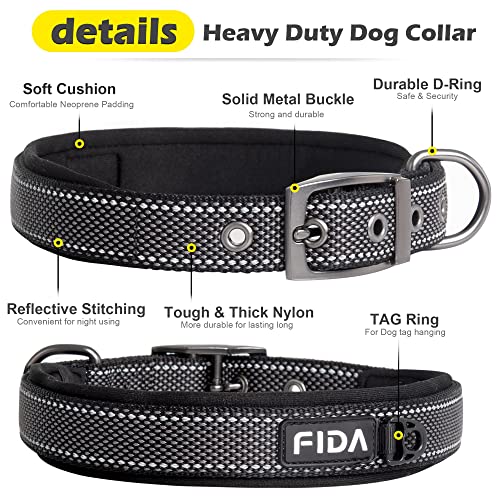 Fida Collare per cani imbottito, resistente collare riflettente con tessitura a doppio strato, collare per cani regolabile e resistente con fibbia in metallo per cani di piccola taglia, nero