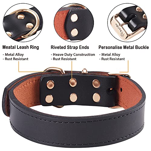 Collare per cani Largo e Spesso in vera Pelle per cani di taglia media Grande ed Extra Grande (Nero, M)