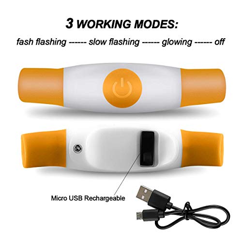 Collare Luminoso per Cani, Collare di Cane Impermeabile,Ricaricabile USB LED Collare Luminoso di Sicurezza per Animale Domestico d'ardore e Misura Regolabile Adatto per Tutti i Cani Gatti (Orange)